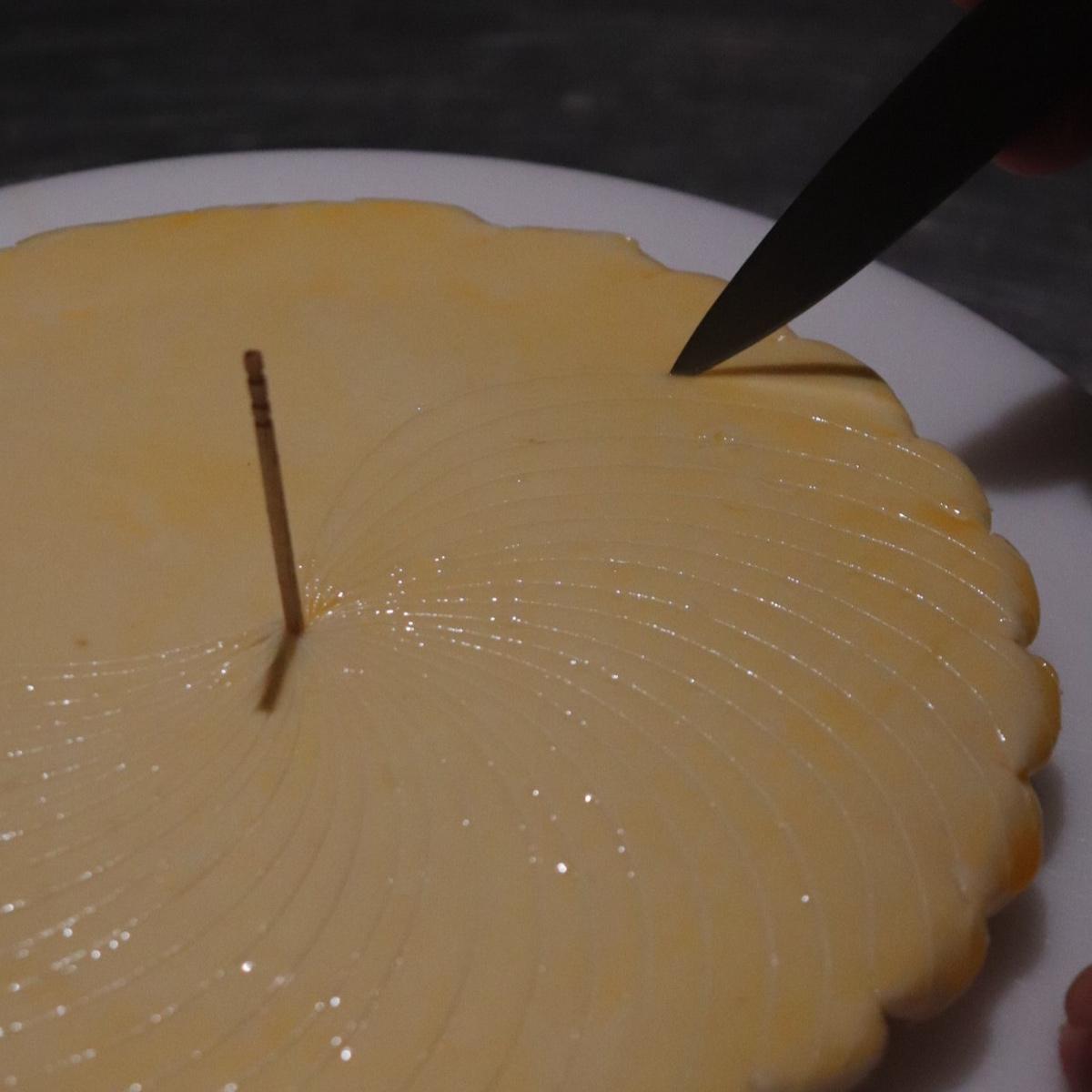 北海道産のバターを使用したパイ生地にフランス リヨンの伝統的なお菓子「プラリネルージュ」を使用したアーモンドクリームをサンドし焼き上げたガレット・デ・ロワ。