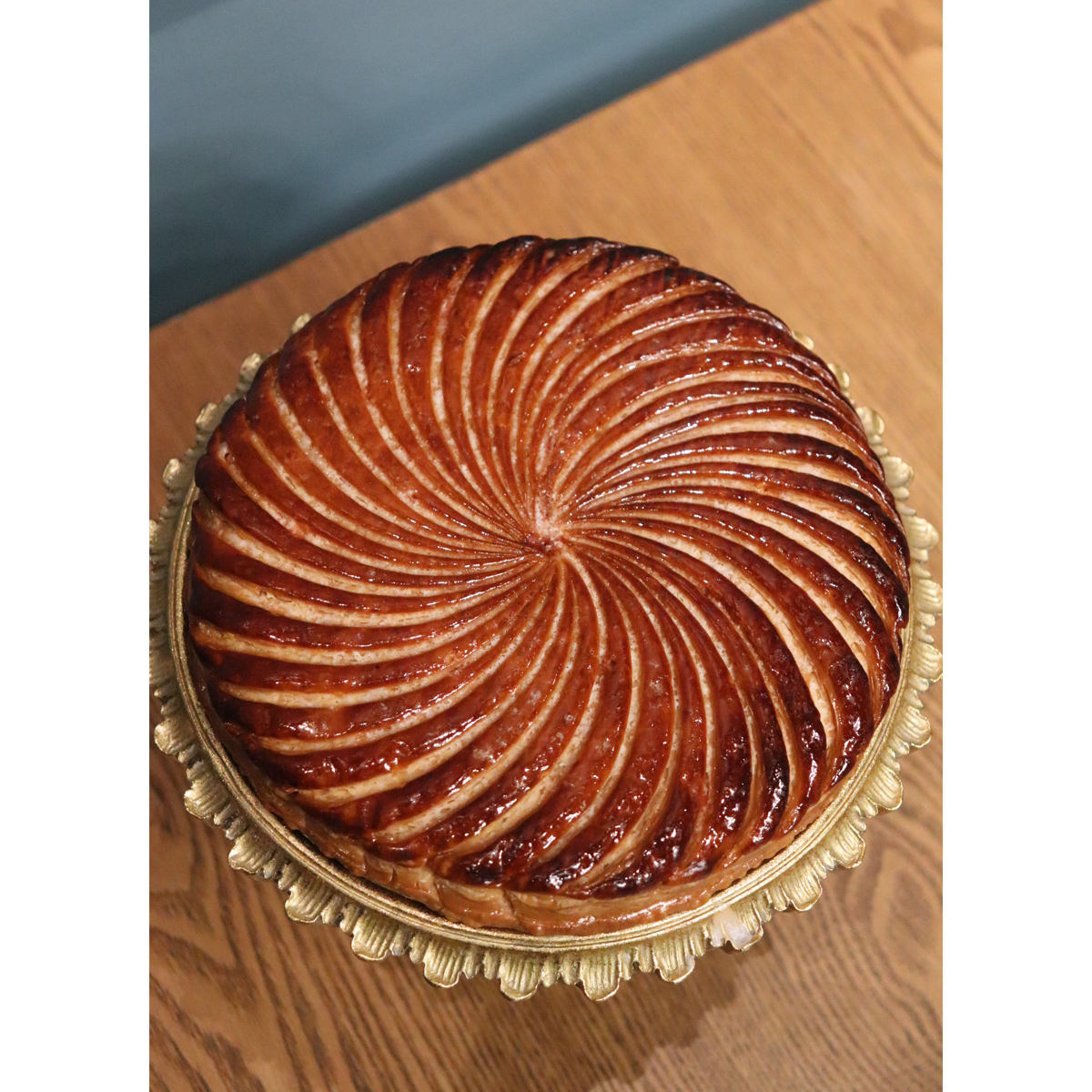 フランス イズニーサントメールの発酵バターを使用したパイ生地とアーモンドクリームをサンドし焼き上げたガレット・デ・ロワ。