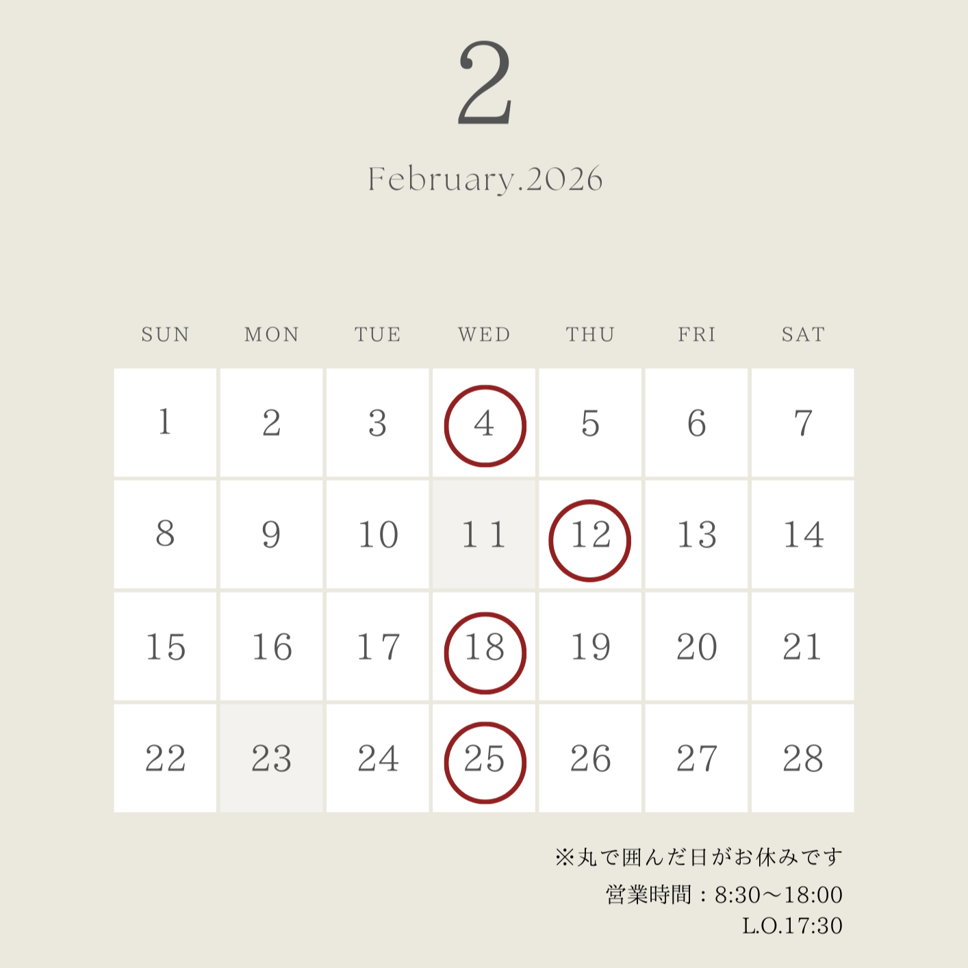 2月の営業とラインナップをご紹介