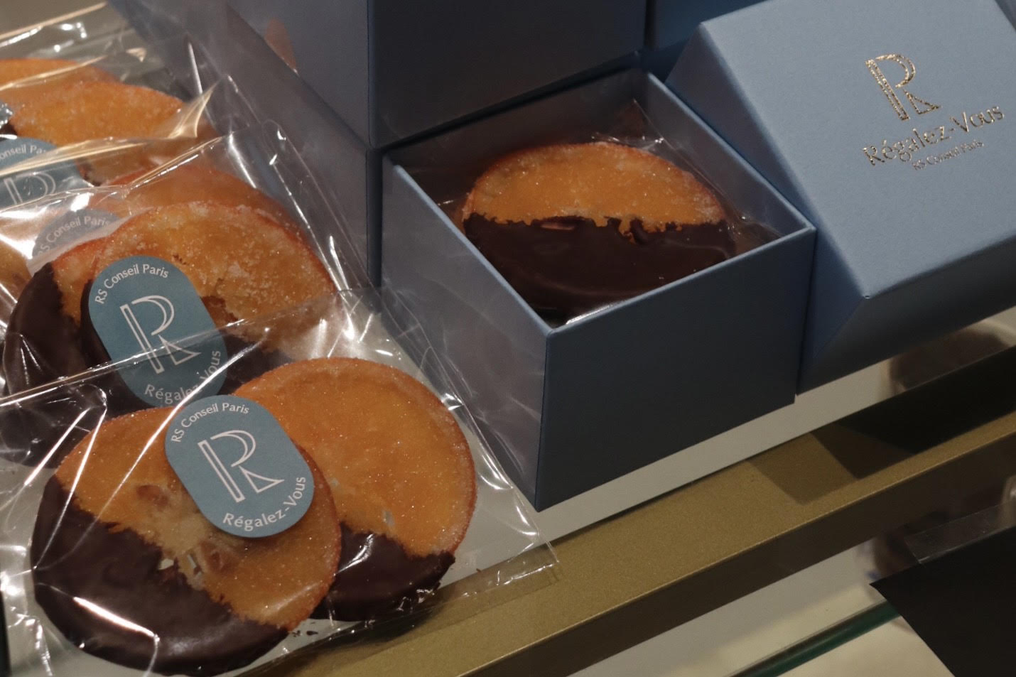 チョコレートには、フランス・ヴァローナ社製を使用。ビスキュイ バロンにはカカオ分64%の「マンジャリ」、ビスキュイ レンヌにはカカオ分40%の「ジヴァラ・ラクテ」を用い、一枚一枚丁寧にコーティングしています。