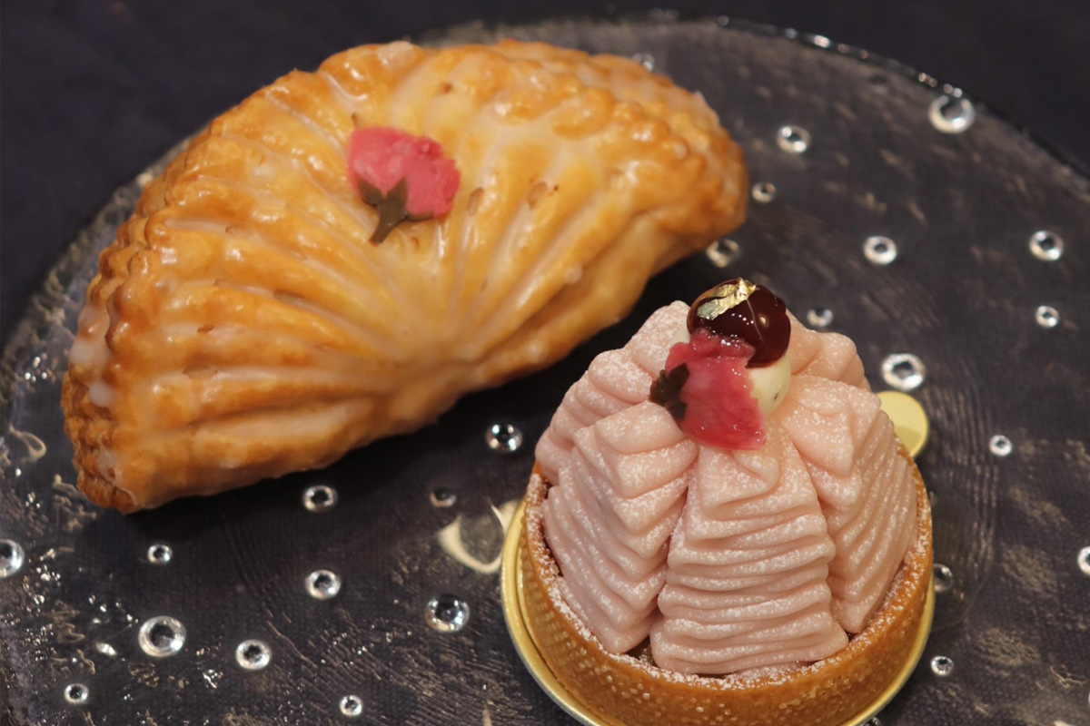 桜の葉の香りをつけた桜の餡をパイ生地で包み、塩漬けの桜、さくらのグラスで仕上げた春限定のパイをご用意しております。