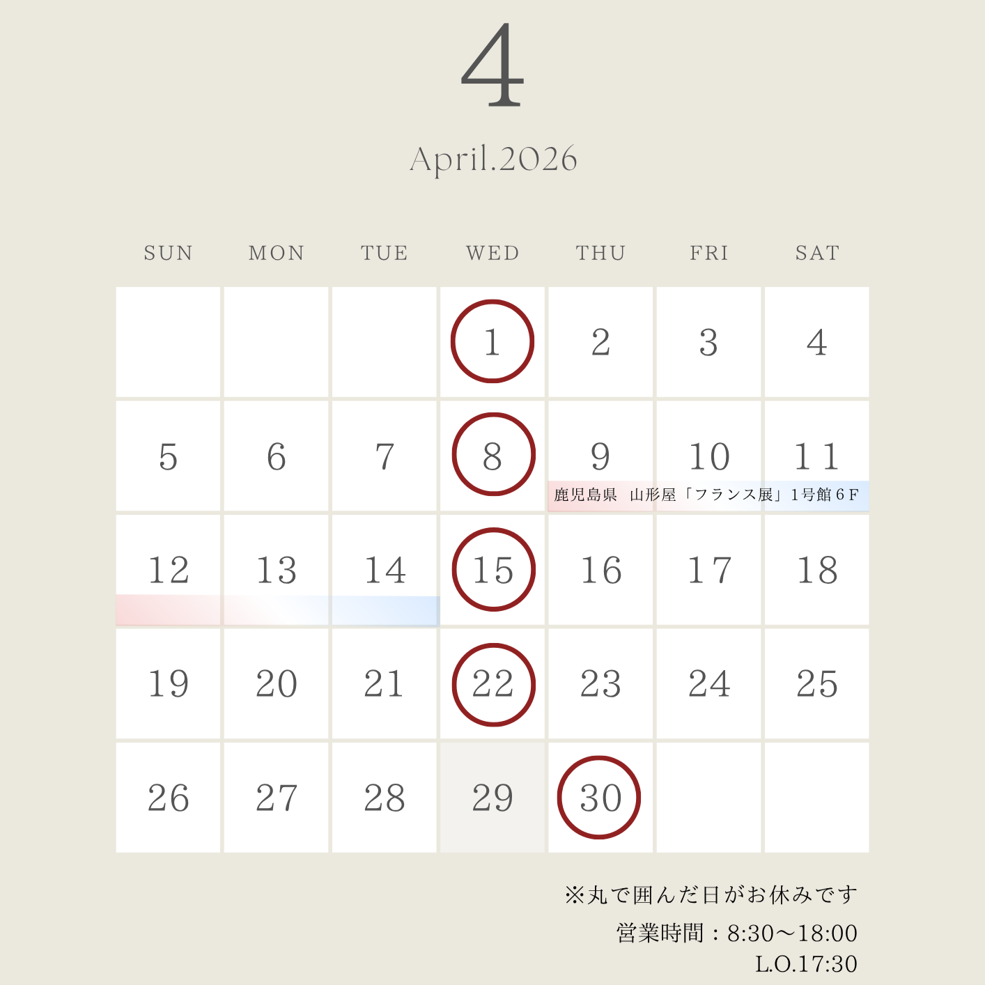 4月の営業とイベント情報のご紹介